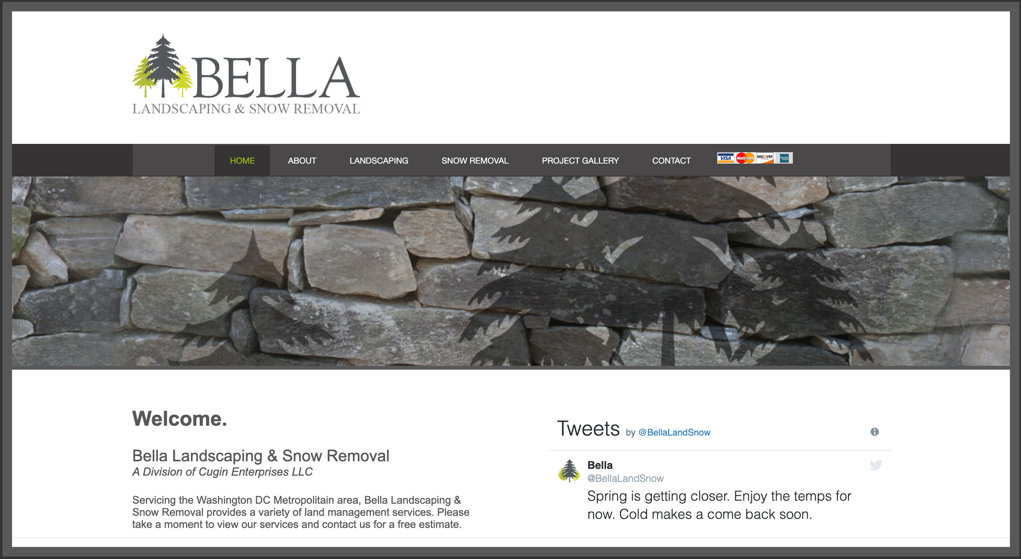 Bella Landscaping & Snow Removal provides a variety of seasonal landscaping, property maintenance, and snow removal services for the Washington DC metropolitain area. Polar Signal provided a full range of design services, developing and adhering to branding guidelines to ensure consistency across a wide vareity of media.